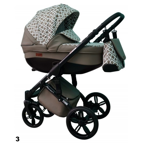 Otroški voziček Macan je kvaliteten, stabilen otroški voziček z globoko košaro za otroka ki je udobna, velika, široka, z lahkim športnim delom ter in z možnostjo namestitve avtosedeža 0+. Voziček je primeren za otroke od 0 - 36 mesecev starosti, ohišje je iz lahkega aluminija. Voziček ima stabilno ohišje za varno in udobno vožnjo po vseh talnih površinah. Prednja kolesa vozička so vrtljiva ki zagotavljajo lahko in enostavno manevriranje vozička. Vgrajeni amortizerji ki so nastavljivi in tako omogočajo brezskrbno vožnjo tudi po pločnikih in po neravnih talnih površinah. Vozički so izdelani v skladu z zahtevami o varnosti, po standardih Evropske unije.