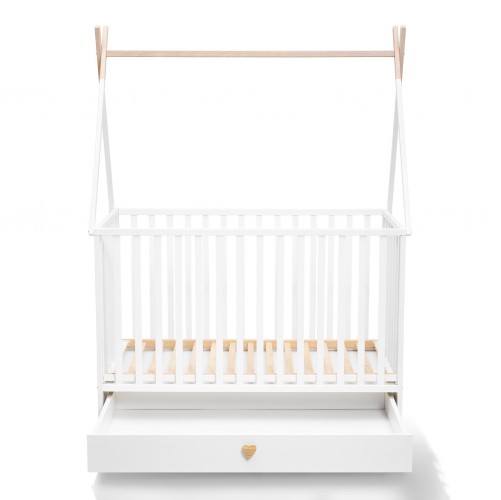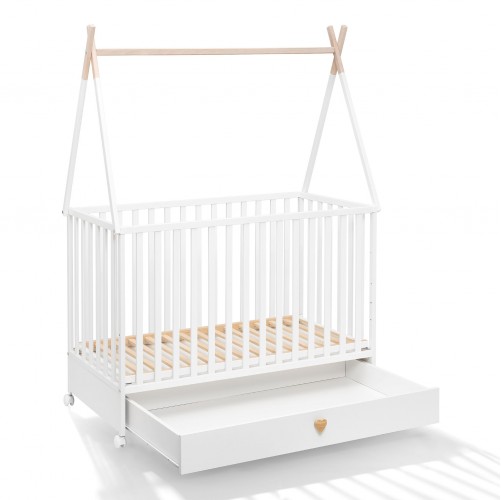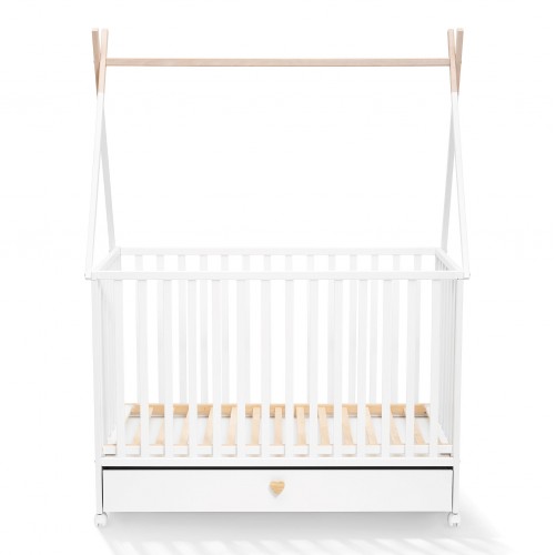 Privlačna otroška posteljica je bila zasnovana po navdihu kulture ameriških staroselcev. Izdelana iz naravnega bukovega lesa ki je ohranjena v nevtralnih odtenkih sive ali bele barve.
