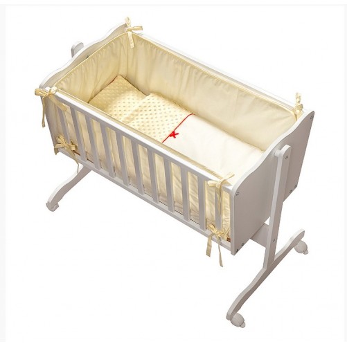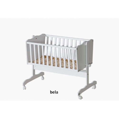 Otroška zibelka iz zbirke Basic v dveh čudovitih barvah v beli in barvi breze. Zibelka je primerna za deklico kot za dečka. Narejena je iz mdf plošč, za lažji prenos so priročna kolesa z možnostjo fiksiranja, prav tako je ležalni del možno fiksirati tako da se ne ziblje, izredno stabilna in čvrsta. Udobni klini ki so nameščeni na vsaki strani in majhnost omogočajo da zibelko lahko postavite tudi v majhen prostor. Tako jo lahko postavite v spalnico tako da boste imeli svojega otroka v prvih nekaj mesecih njegovega življenja blizu sebe. Zibelka ima zaobljene vogale, izdelana v skladu evropskih norm. Letve - ograjice so narejene iz lesa-gaber, letev za vzmetnico je iz bukovega lesa in ni lakirana.